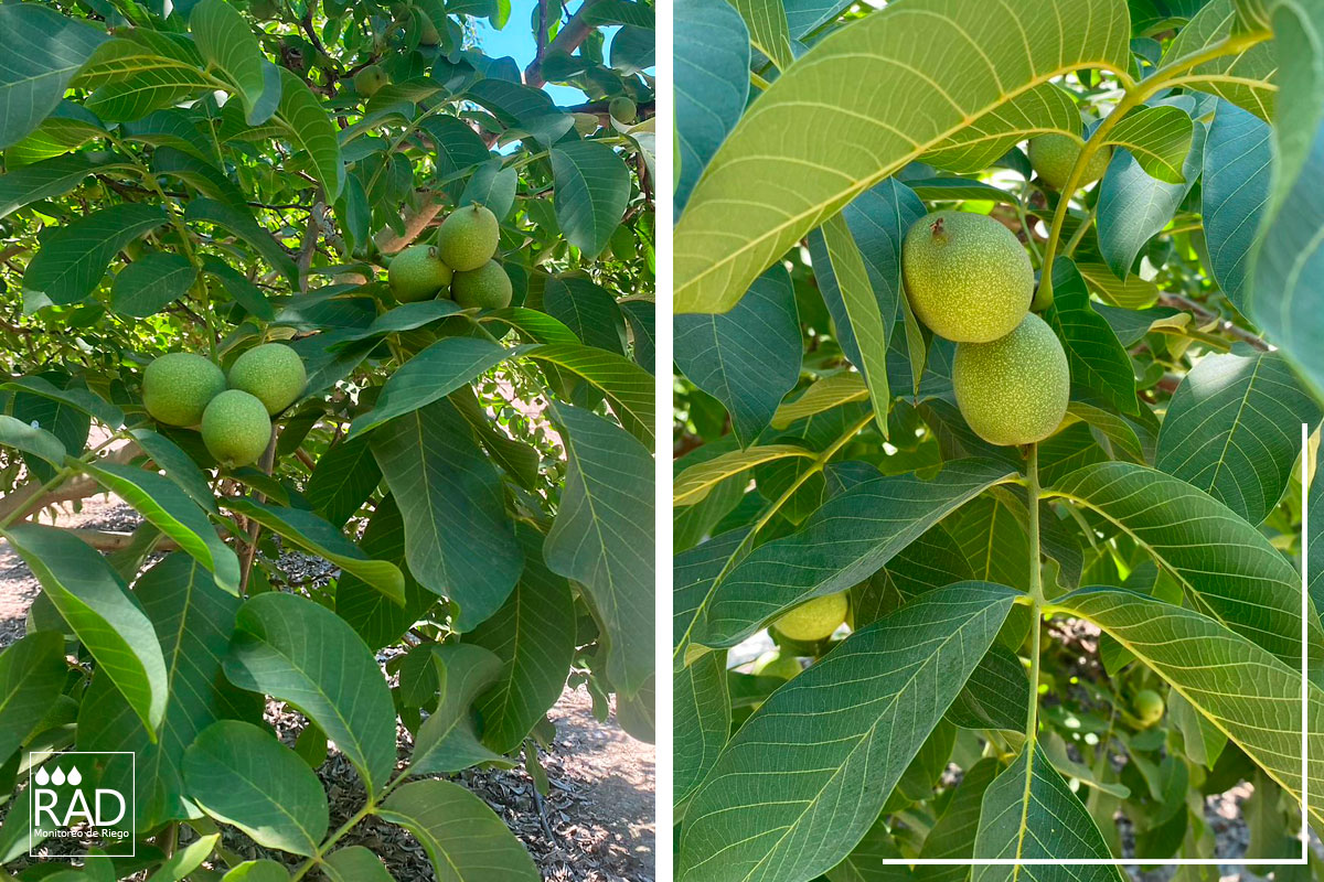 Huerto de Nogales zona central de Chile , Calera de Tango. Con dos años de tecnología instalada, totalmente sano y recuperado a diferencia del testigo. El segundo año tiene una mayor brotación y su producción llego a 8.400 kgs por ha.